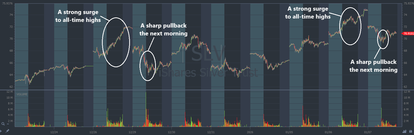 Just like SLV did a few days earlier on December 26. And the very next trading day, December 29, it fell lower.
