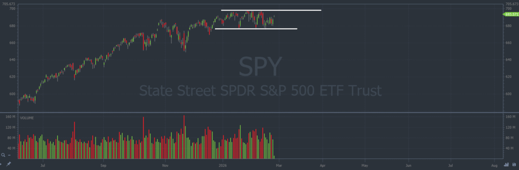 Here’s a chart of the SPY just before the NVDA earnings announcement yesterday. It’s trading in a tight channel near the all-time highs: