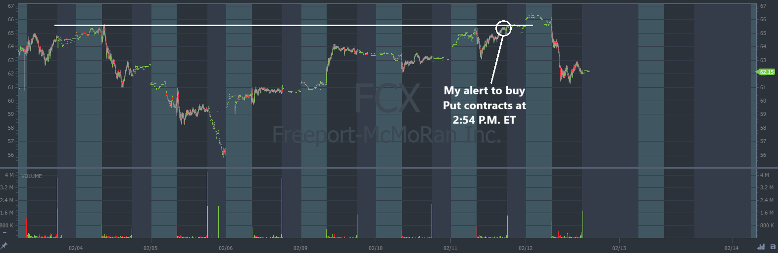 Judging by the recent bearish momentum in the precious metals sector as a whole, I theorized we could target FCX for some Put trades.