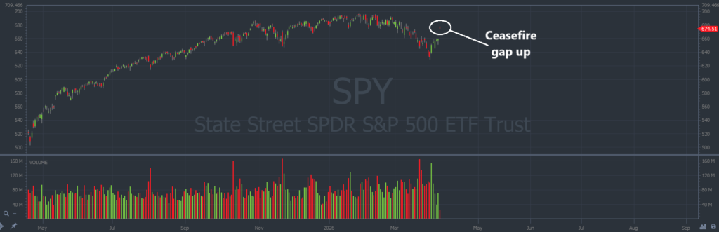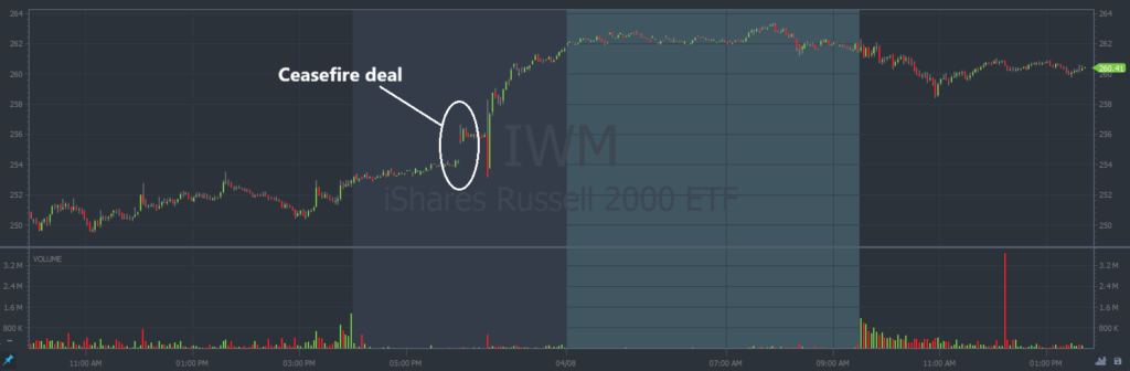 On Wednesday, April 8, the morning after the ceasefire was announced, markets gapped up.