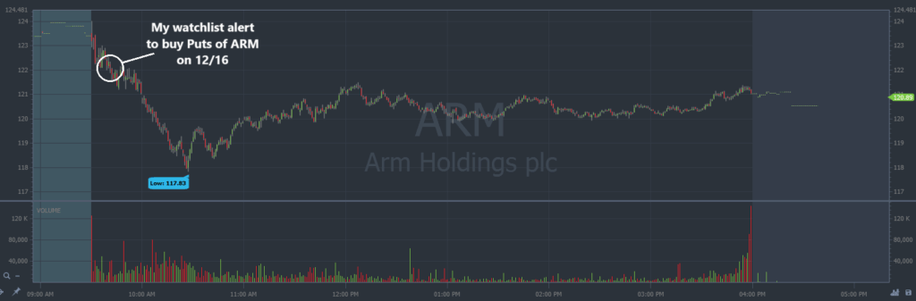 I liked the setup on ARM because it was a tech stock breaking below multi-month support on December 16.