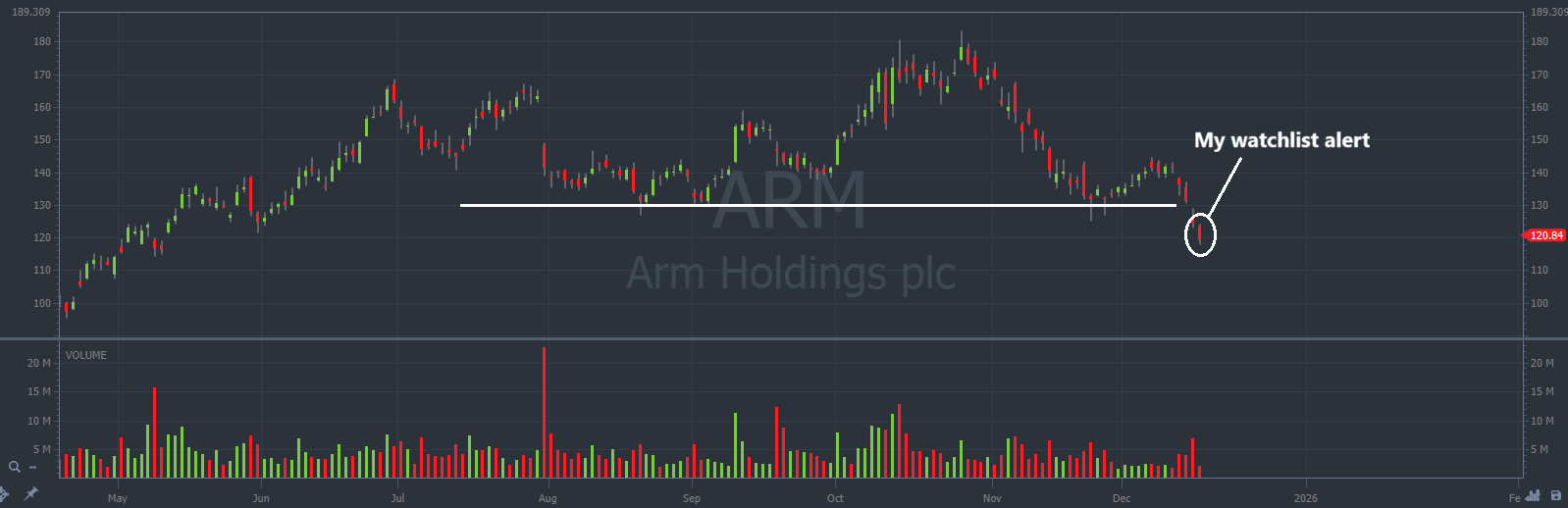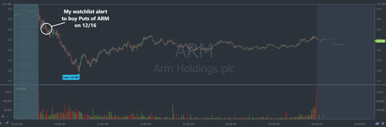 I liked the setup on ARM because it was a tech stock breaking below multi-month support on December 16.