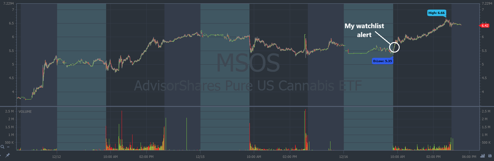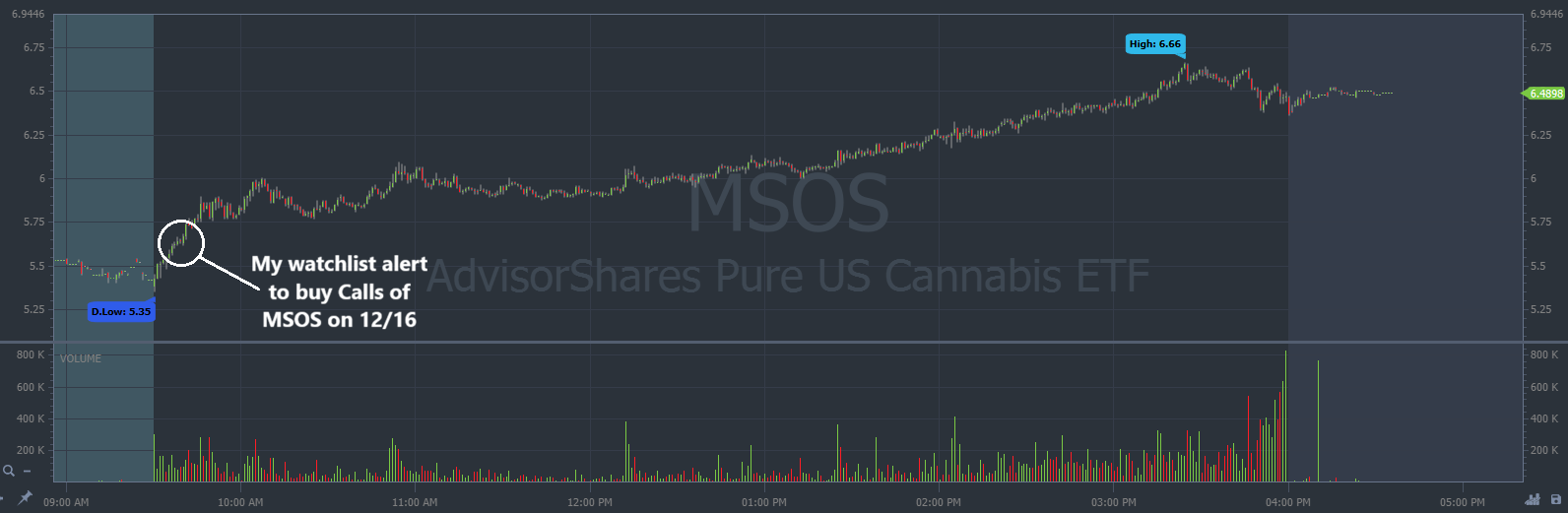 MSOS was already running before my alert on December 16. This catalyst first gained steam on December 12.
