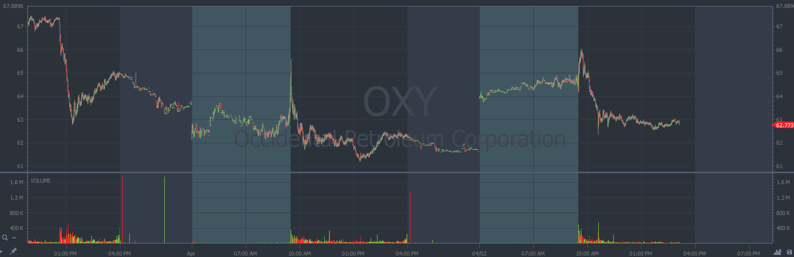 OXY chart multi-day, 1-minute candles Source: StocksToTrade